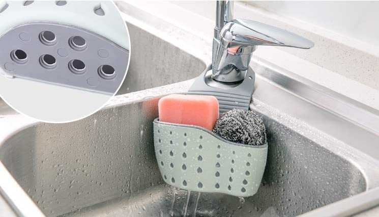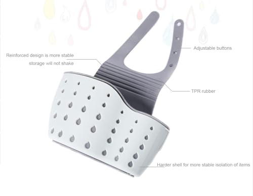 - Healthy living: Drainage hole design to prevent bacteria breeding and keep healthy, clean and dry, adjustable cute candy snap design, you can hang it on the faucet and adjust the length of the strap as you like, integrated track provides hanging and drying space for wet dishcloths and dishwasher, hang it on the faucet to store sponges, towels, razors, cleaning balls, soap and other small things. Hollow bottom Drainage and drying, less likely to harbor bacteria