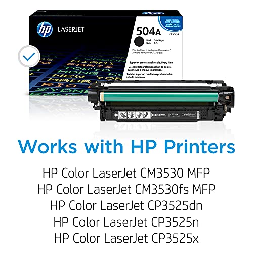 - HP 504A (CE250A) toner cartridges work with: HP Color LaserJet CP3525, CM3530.