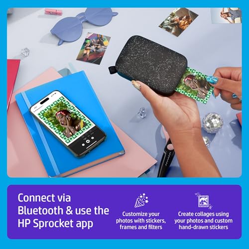 - EXCLUSIVE FASHIONABLE FEATURES - curate your photos with the HP Sprocket app, and access exclusive frames, filters, and stickers for your 2x3” Photos.