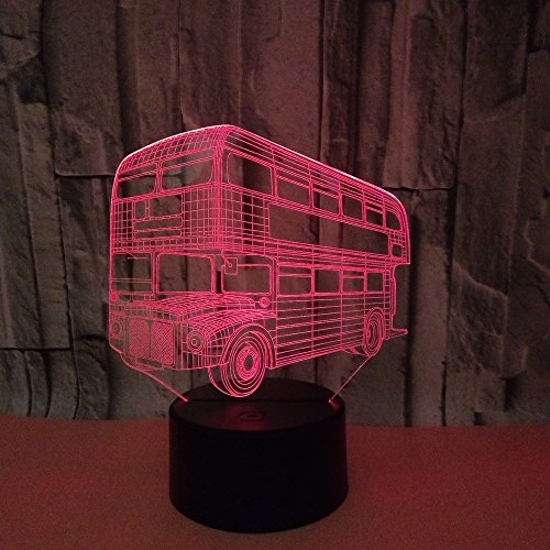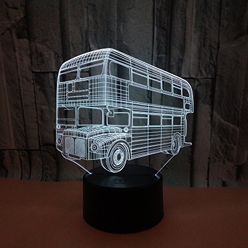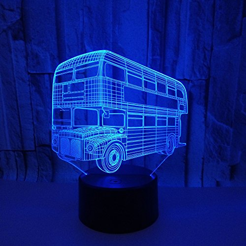 HPBN8 Ltd - 3D Creative Bus Night Light USB Powered Remote Control Touch Switch Decor Table Optical Illusion Lamps 7/16 Color Changing LED Table Lamp Xmas Home Love Brithday Children Kids Decor Toy Gift