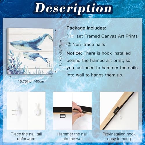 - لوحات فنية جدارية باللون الأزرق لتزيين الحمام: 4 قطع مقاس 15.7 × 15.7 انش (40 × 40 سم)