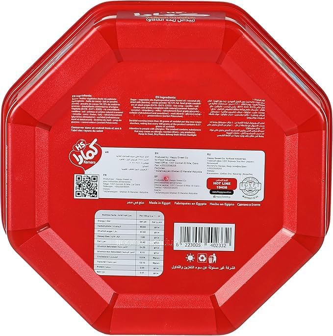 - تغليف جذاب: يتم تقديمه في علبة مثمنة حمراء مميزة مع صور نابضة بالحياة تعرض مجموعة متنوعة من النكهات، مما يجعلها هدية مثالية للاحتفالات والمناسبات الخاصة
