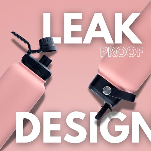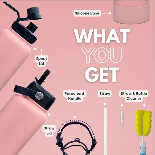 Hssentials - Stainless Steel Water Bottle Flask Double-Walled Vacuum-Insulated 2 Lids Eco-Friendly Perfect for Cold & Hot Drinks On The Go 100% Leakproof - Gym, School, Travel (Pink, 1000ml (34oz))