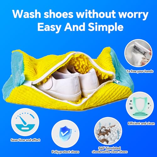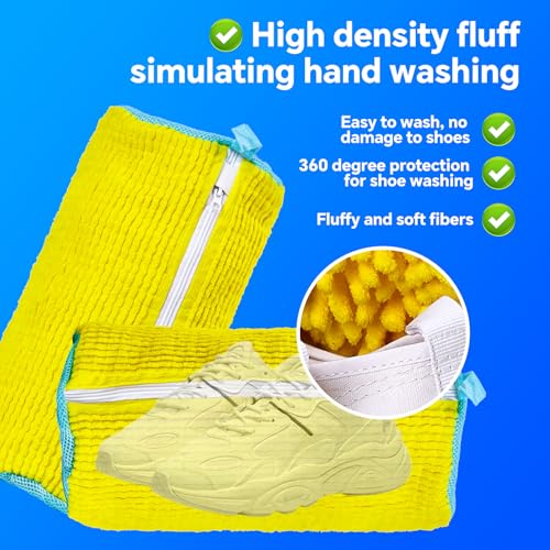 htiepf - شنطة غسيل الأحذية من هتيبف، أكياس غسيل أحذية رياضية رقيقة قابلة للغسل للغسالة والمجفف (عبوة من قطعتين)، أصفر، أدوات الاستخدام
