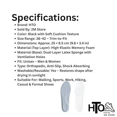 HTO - HTO 4D Cloud Orthotic Silicone Insoles – Shock Absorbing, Breathable, Trim-to-Fit Foot Support Inserts – Anti-Slip, Energy Return – Unisex Comfort for Daily Walking & Pain Relief – Sold by 2M Store