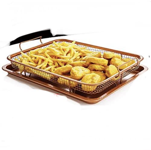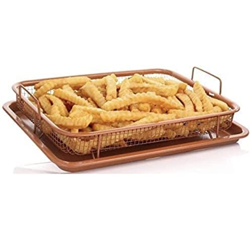 - تحتوي صينية المقرمشات النحاسية المكونة من قطعتين على سلة مقرمشة شبكية مرتفعة تسمح بمرور الهواء شديد السخونة ودورانه حتى 360 درجة كاملة حول الطعام لضمان طهيه بالتساوي لضمان عدم الإفراط في طهي الطعام أو جفافه.