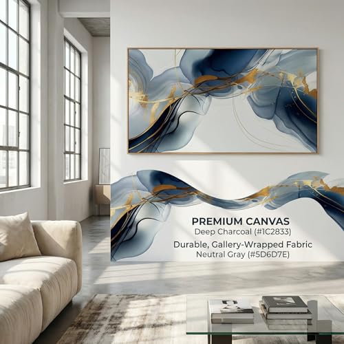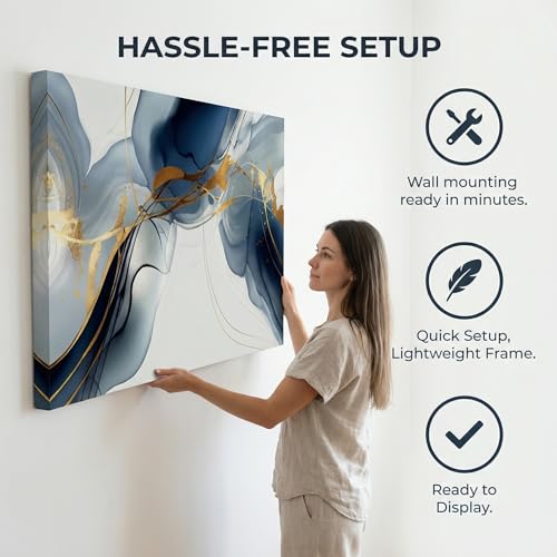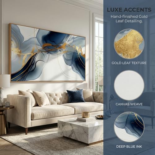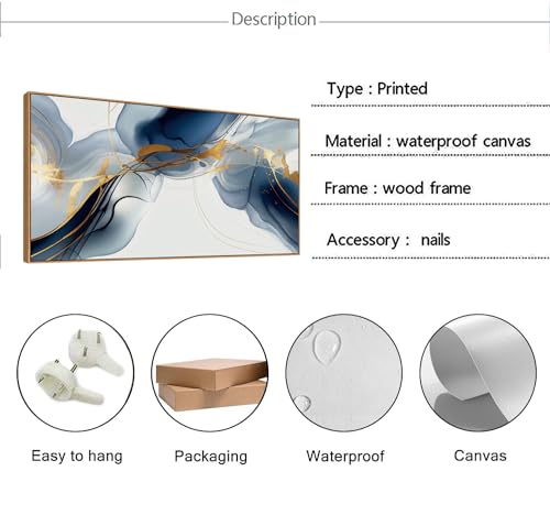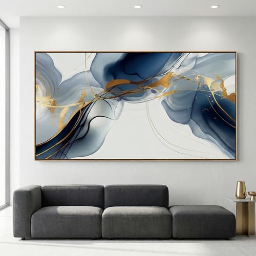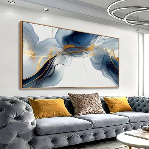 HUADAOART - HUADAOART Abstract Painting Modern Art Wall Mural Gold And Blue Background Wall Decor for Living Room Bedroom Print on Artwork Home Decor Framed 30x60inch