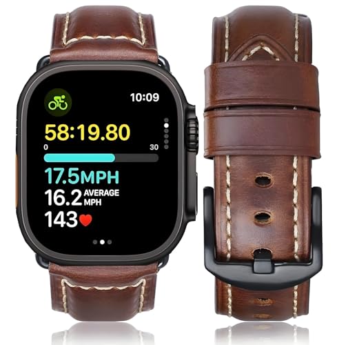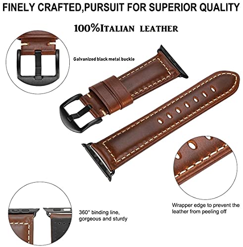 HUAFIY - سوار جلدي من هوافي لسوار ساعة ابل 45 ملم 44 ملم 42 ملم 38 ملم 40 ملم 41 ملم، سوار جلدي بديل لسلسلة اي ووتش 7 6 5 4 3 2 1