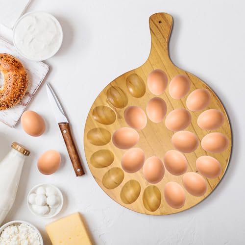 - 【Thoughtful Design Features】 Equipped with a convenient handle, our wooden egg tray allows for easy transportation and handling. Its handle also includes a small hole that can be easily hung from a kitchen hook, making it easily accessible.