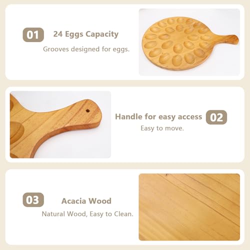 Huakaile - Huakaile 2 Sides Wooden Deviled Egg Platter & Charcuterie Board, Round Deviled Egg Tray, Cutting Cheese Board Deviled Egg Serving Platter Holder Container for Countertop Party (24 Slots)