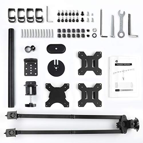 - 2 MOUNTING OPTIONS - Two installation methods can be selected according to your needs. You can attach the bracket and hold your monitor using the C-clamp or, if there is a hole in your desk, you can choose the grommet mount. The maximum thickness of the desk for mounting a C-clamp is 10 cm. The maximum thickness of the desk for mounting the eyelet is 8 cm