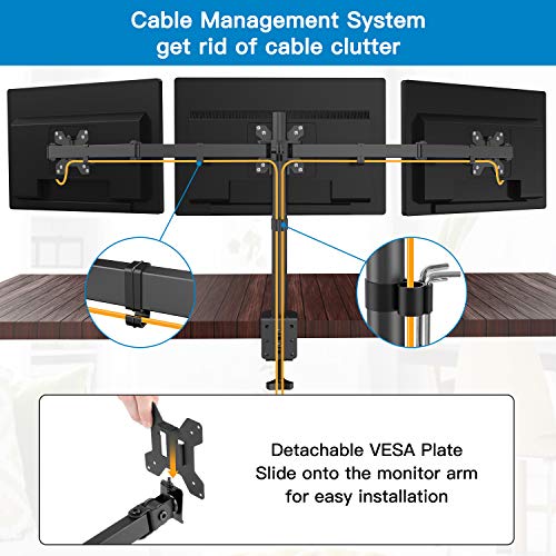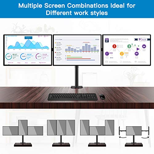 - 3 MONITORS & ADJUSTABLE HEIGHT - Arms and side mounting plates tilt from -15° to +15°, swivel from -90° to +90° and allow 360° rotation and height adjustment along the center pole for ideal viewing angles. You can adjust your monitor to different heights or angles to best meet your needs