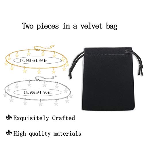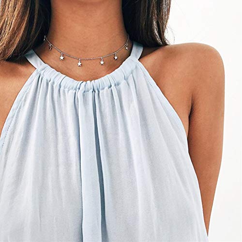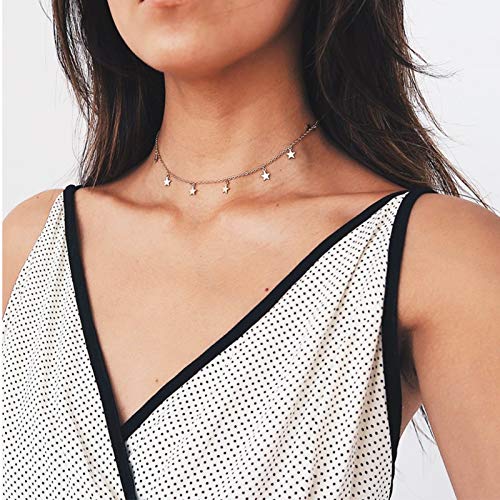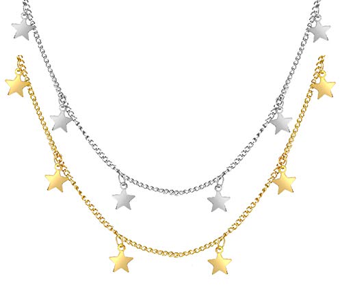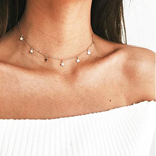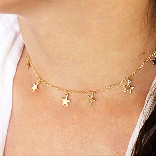 HUASAI - HUASAI Boho Layered Necklaces for Women - Gold Plated Star Choker Necklace, Dainty 14K Gold Star Necklace, Metal, No Gemstone
