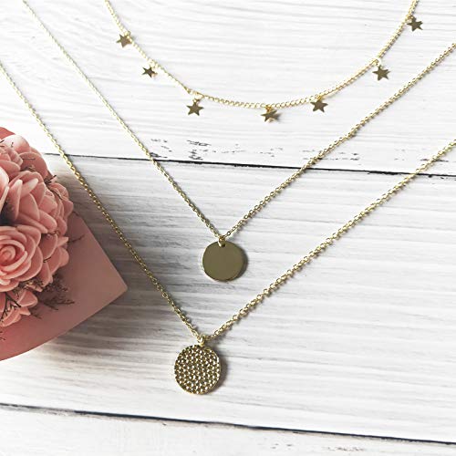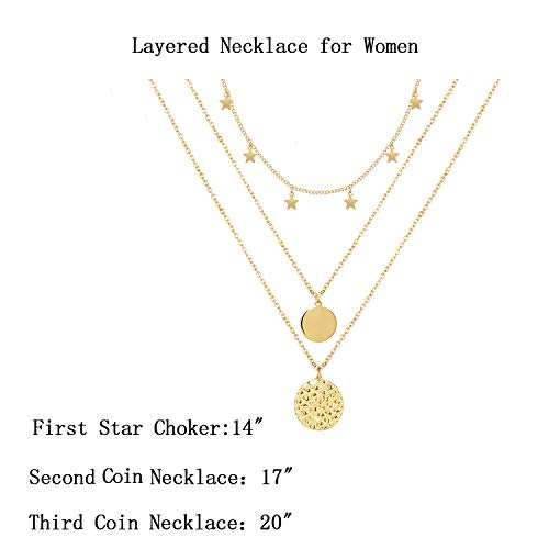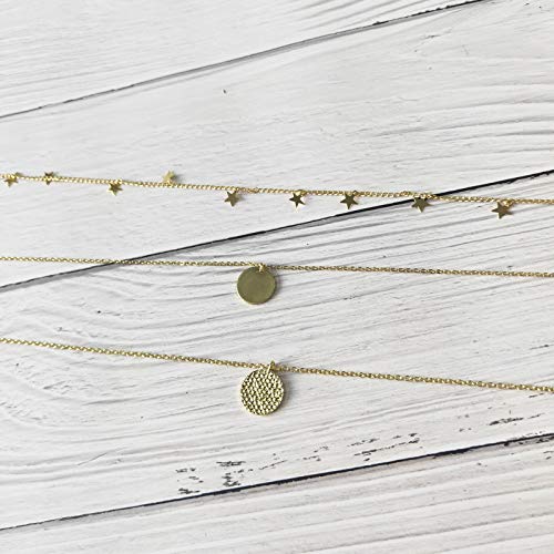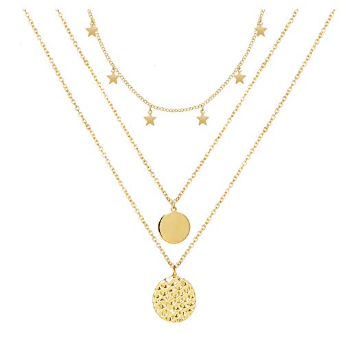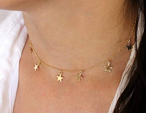 HUASAI - هواساي عقد ضيق على شكل نجمة للنساء قلادة متعددة الطبقات ذهبية للبنات انيقة من الذهب عيار 14 قيراط معدن خليط معدني