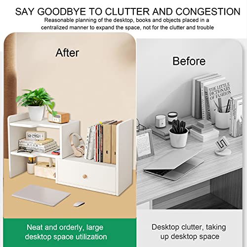 HUATOL - HUATOL Desktop Shelf Bookshelf,Adjustable with Drawers Desktop Shelves Rack Storage Organizer,Wood Countertop Bookcase Storage Display Rack,Art Office Supplies