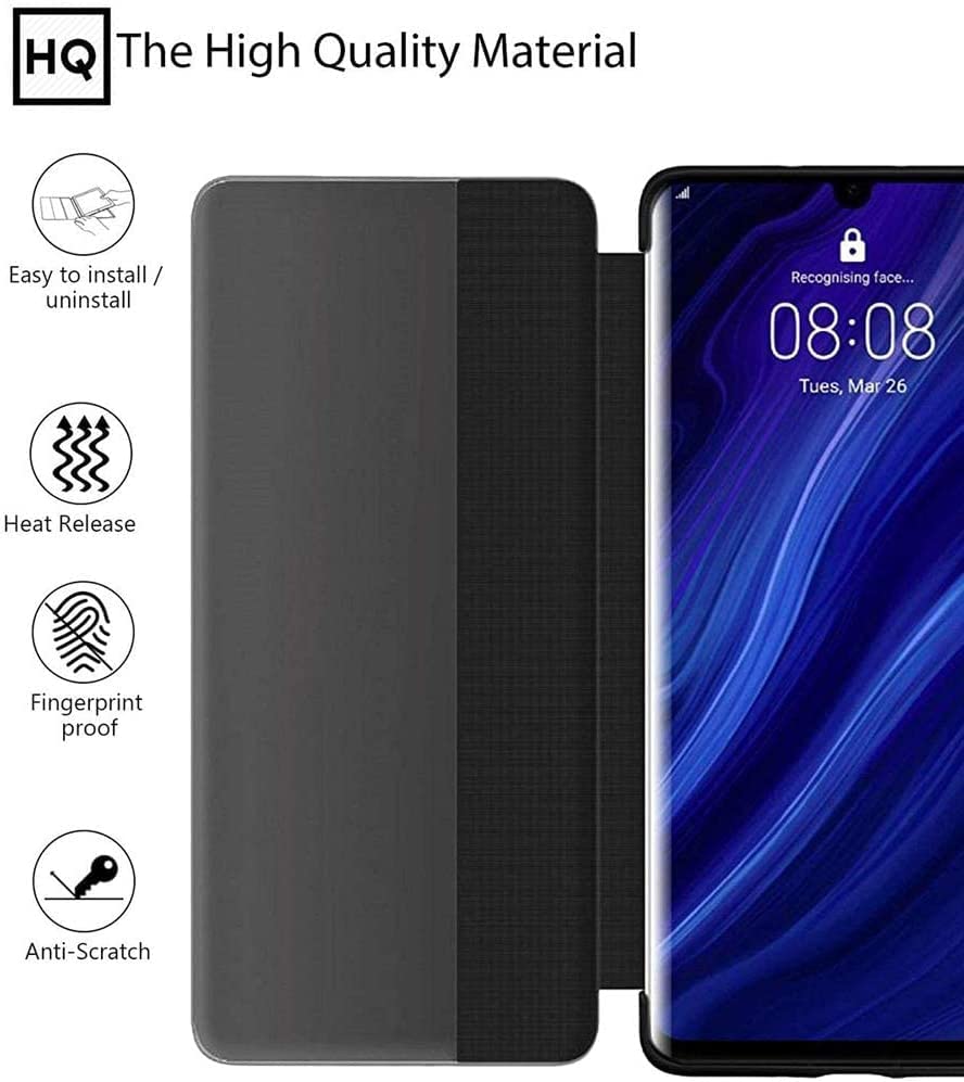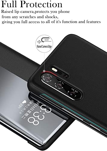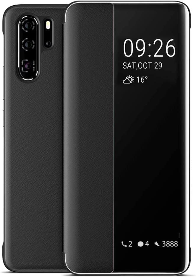 Generic - جراب لموبايل هواوي P30 Lite قلاب من جلد البولي يوريثين المقاوم للحرارة الناعم مع داخلي شفاف حماية كامل P30 غير اصلي P30 Black جعبة