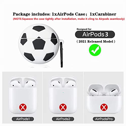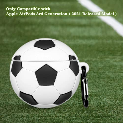Huayou - Cute Case Cover for 2021 Apple Airpods 3rd Generation with Keychain,Cool Fun Aesthetic Sports Football Designed Shockproof Protective Soft Silicone Case for Women Men Girls Boys (Football)