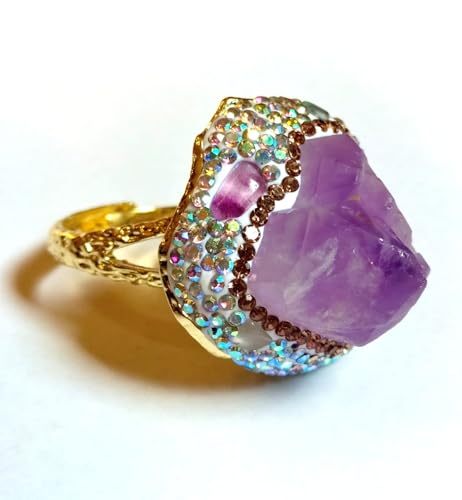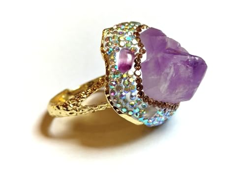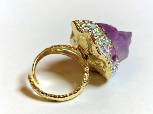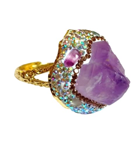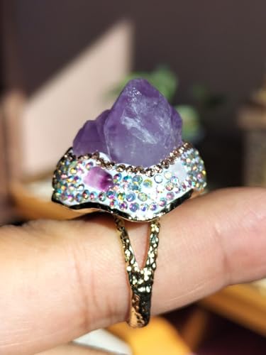 Generic - خاتم مطلي بالذهب ومرصع بحجر الجمشت والزركون الطبيعي الانيق وانيق عالي الجودة للنساء، افضل هدية