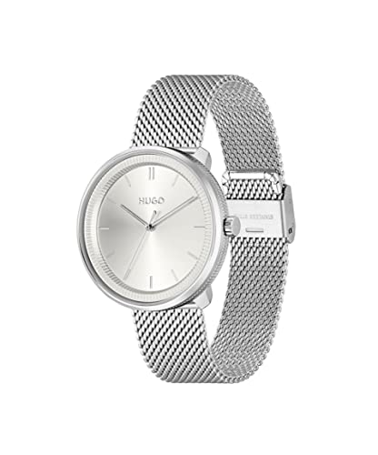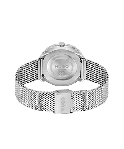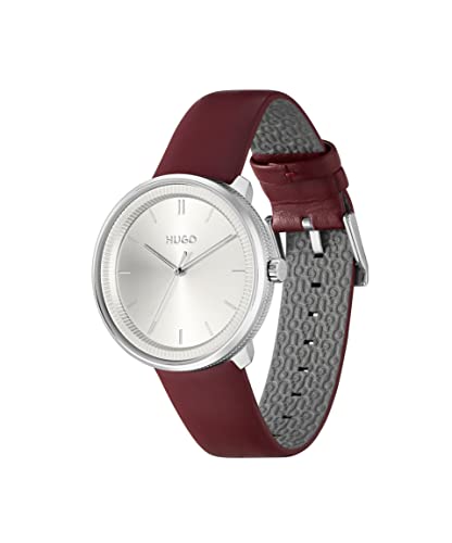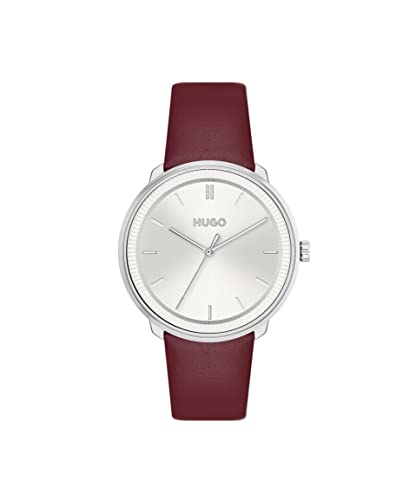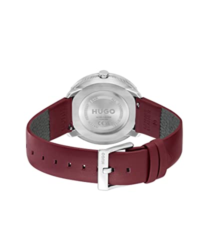 HUGO - ساعة فلويد للجنسين من هوجو بوس، بمينا أبيض وفضي وسوار أحمر من جلد العجل - 1520023، فضي وأبيض
