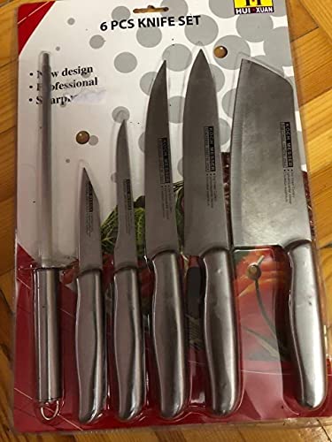 Hui Xuan - طقم سكاكين من 6 قطع مع ساطور ومسن سكاكين