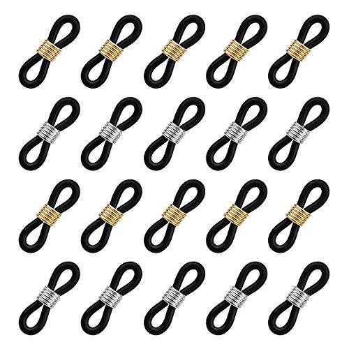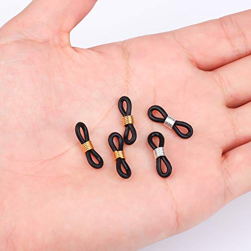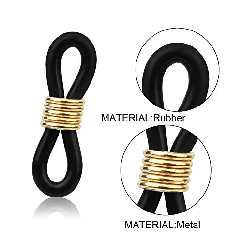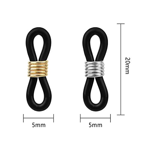HUIHUIBAO - 20 Pieces Eyeglass Chain Ends, Adjustable Spring Rubber Ends Connectors for Eye Glasses Holder Necklace Chain Strap, Gold and Silver Ring (Black)