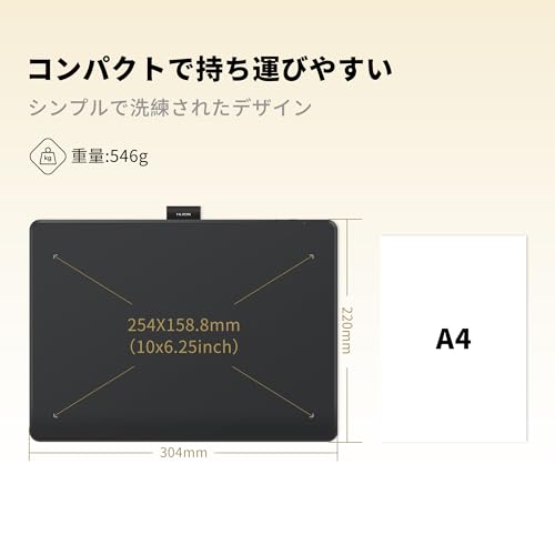 - Product Specifications: Size: 12.0 x 8.7 x 0.3 inches (304 x 220 x 8 mm); Reading Range: 10.0 x 6.25 inches (254 x 158.8 mm); Weight: 19.3 oz (546 g). Compact and portable Ergonomic, simple and sophisticated design makes it comfortable for long periods of creative work. Please check the official website for detailed product instructions. Note: You can switch to Japanese to get a driver and manual (English language not guaranteed)