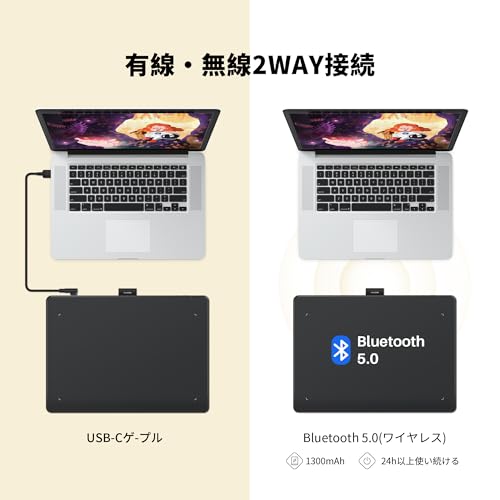 - 【Wireless Connection】Not only can you connect a USB-C cable, but you can also connect wirelessly with Bluetooth 5.0. Even wireless with no delay and no cable stress. Built-in 1,300 mAh high-capacity battery that can be used for over 24 hours without wireless operation