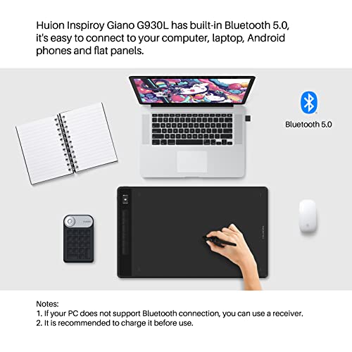 - ✔️Easy Connection with 5.0: built-in Bluetooth 5.0 technology with extended range and faster transfer speed greatly facilitate the connection between the G930L digital drawing tablet and a PC/phone/tablet. It also has a 10m transmission distance, you don't have to worry about disconnecting when you draw.