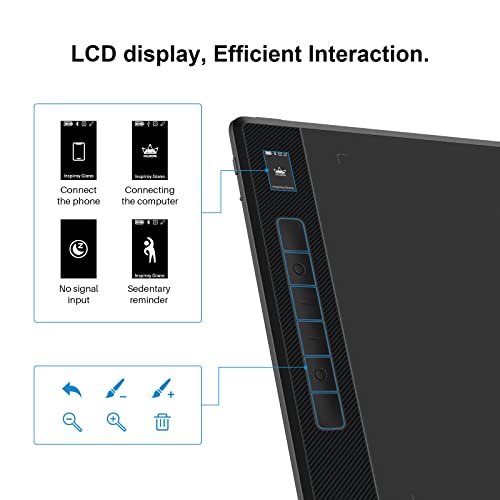- ✔️LCD display, Efficient Interaction: based on the LED display, users could check the device status at any time through the pen tablet G930L. Besides, equipped with 6 programmable express keys can customize functions of shortcut keys as requested, helping to streamline work and boost work efficiency. It also works for both left and right-handed users.