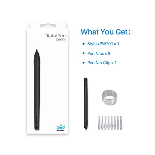 HUION - قلم رقمي من هيون PW201 4096 بدون بطاريات لتابلت الرسومات H430P، لحاسوب لوحي