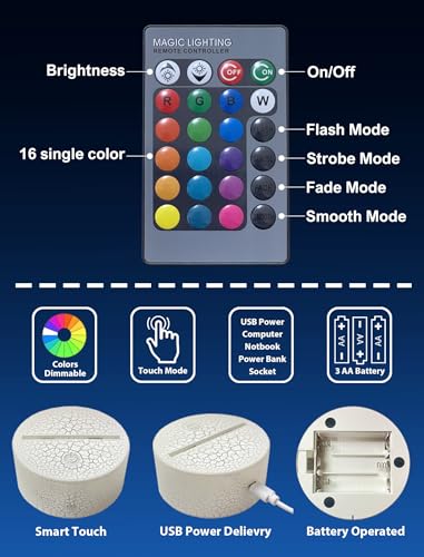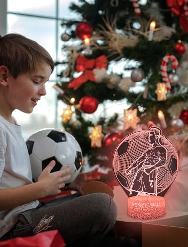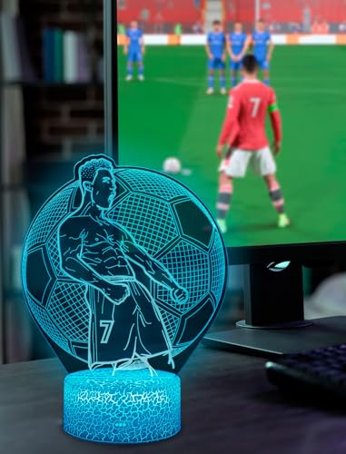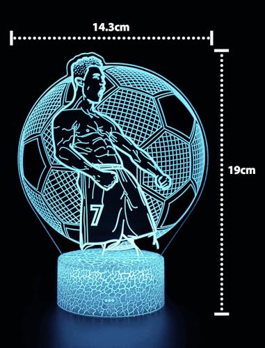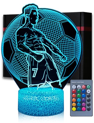 HUIPIN - مصباح ليلي ثلاثي الأبعاد بتصميم لاعب كرة القدم رقم 7، مصباح ليلي قابل للتعتيم بعدد 16 لون مع جهاز تحكم عن بعد، هدايا كرة القدم للأولاد والبنات والمراهقين والمشجعين من هويبين