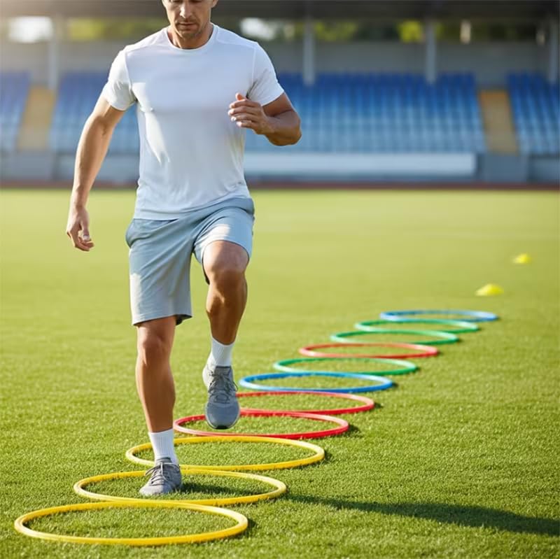 - Set of 6 hula hoop rings suitable for group training and fitness activities Lightweight plastic construction supports easy movement and safe play 60cm diameter helps improve balance and coordination Green color ensures clear visibility during group sessions Ideal for schools, sports clubs, and fitness programs