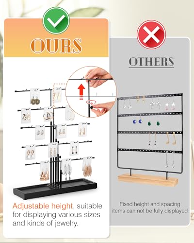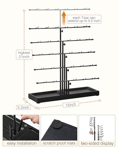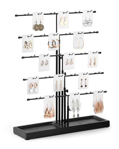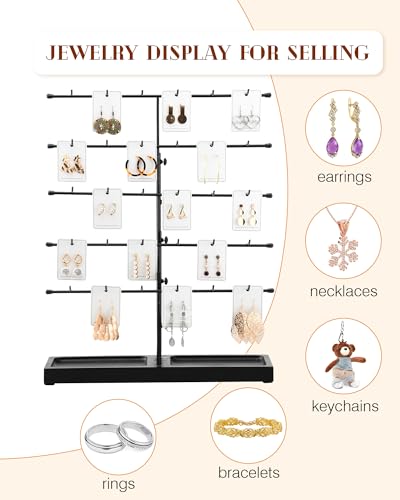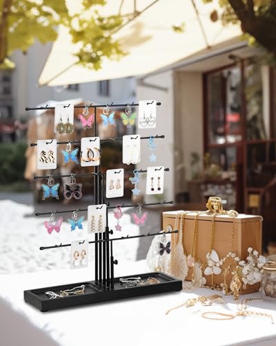 - Adjustable & Extra-tall: Each tier rod can extend to a overall maximum height of 20 inches, this earring display stand is suitable for displaying long necklaces and beaded bracelets. Its compact design can fully showcases your earrings and save tabletop space, perfectly fit for craft display occasions like outdoor farmers market, weekend craft fairs, flea market booths, vendor shows, festivals.
