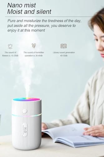- Material: ABS+PP+electronic components+silicone Product size: 6.8*6.8*11.5cm Color: white, black, pink, green Input voltage: DC5V Input current: 1A Rated power: 2W Working current: 350mAH Power supply mode: USB data cable in-line power supply Water tank capacity: 220ml Spray flow: 40ml/H Three light modes: marquee light, colorful light gradient, fixed light