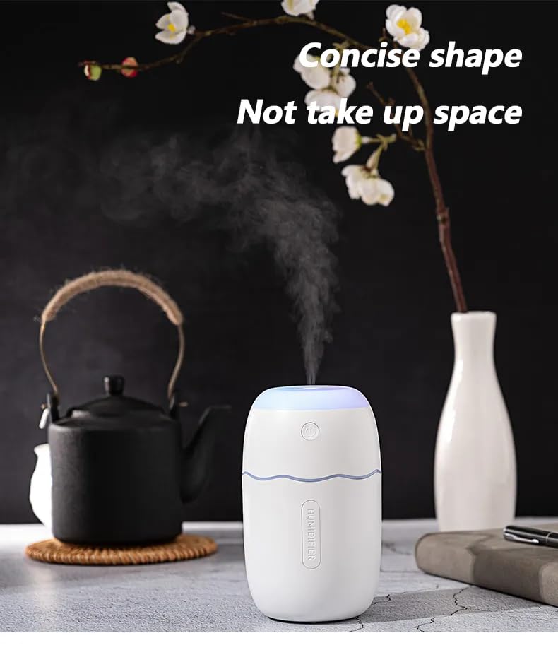 Generic - جهاز ترطيب هواء محمول بالموجات فوق الصوتية منعش للمنزل والمكتب والسيارة ومزود بمصباح ليلي ليد، سعة 280 مل، لون أبيض