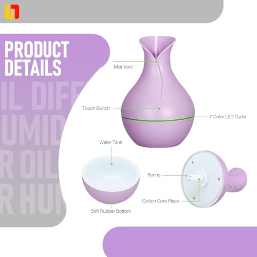 Generic - موزع روائح محمول بمنفذ USB - مرطب بالموجات فوق الصوتية صغير مع ضوء ليد ليلي، موزع زيوت عطرية عصري وهادئ للغاية للمنزل والمكتب والحضانة، 5 فولت، 3 وات (أرجواني)