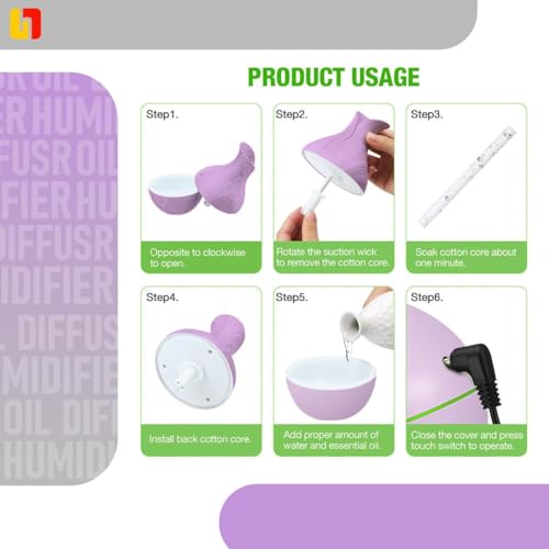 - العلاج العطري المريح: حوّل مساحتك إلى واحة هادئة مع هذا المرطب بالموجات فوق الصوتية الذي يعمل كموزع روائح علاجية. استمتع بفوائد الزيوت العطرية المفضلة لديك مع زيادة الرطوبة في الهواء.