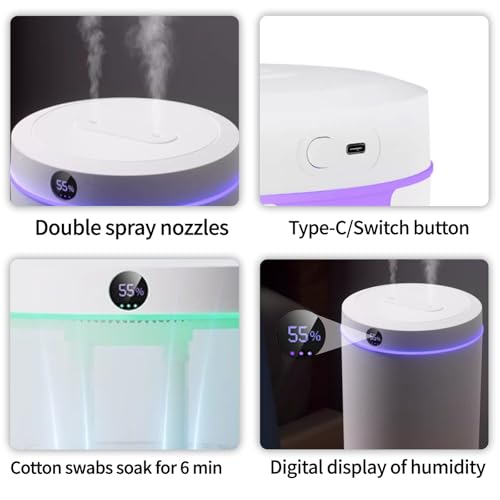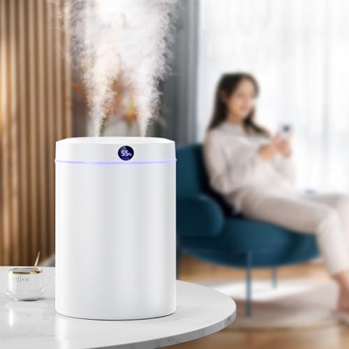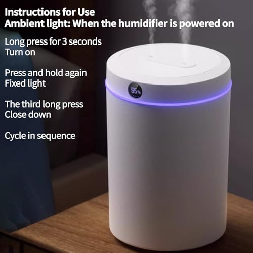 - Humidity Digital Display and 6 Hours Automatic Timing Function: This air humidifier has humidity display function. The intelligent humidity setting automatically adjusts the fog volume through the indoor humidity sensor, keeping the indoor humidity within the range of 40% to 55%. The automatic timing function is that the humidifier will automatically shut down after 6 hours of use.