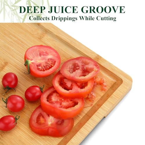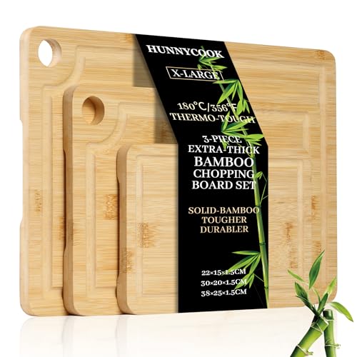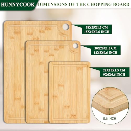 hunnycook - Hunnycook Wooden Chopping Board Set - 3 Sizes Bamboo Chopping Boards for Kitchen with Juice Grooves & Handles, Ideal for Carving Meat, Vegetables and Bread, Durable Chopping Board, Gifts for The Home