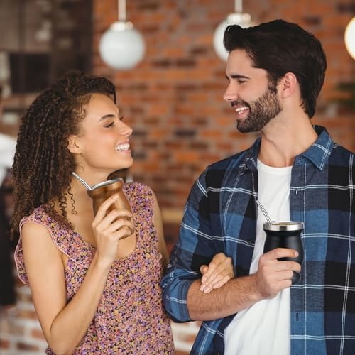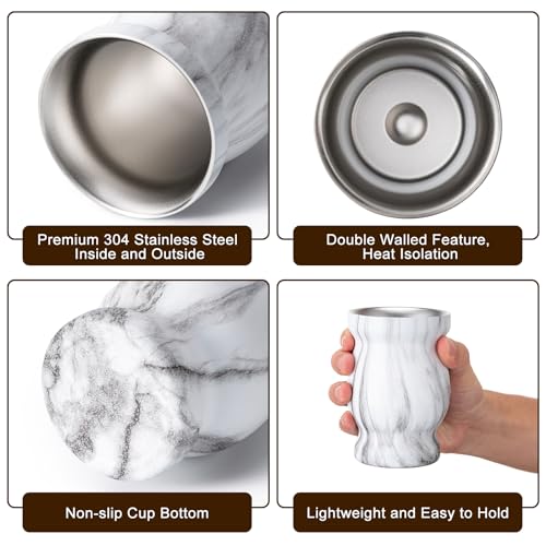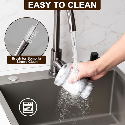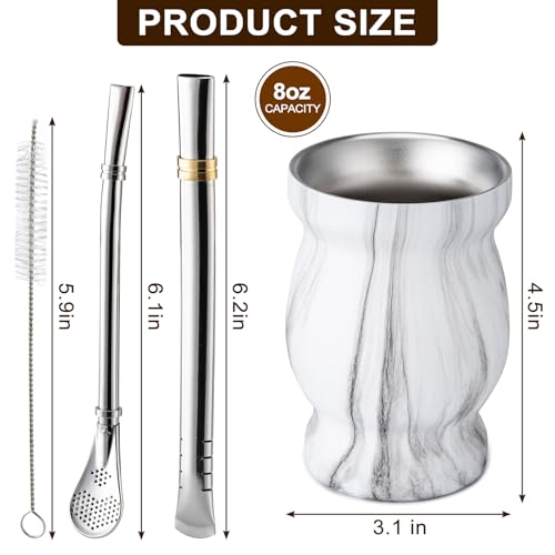 Husfunov - كوب يربا ميت 226 جم من هوسفونوف، كوب متة مزدوج الجدار من الفولاذ المقاوم للصدأ 304، كوب شاي يربا متة عازل للحرارة يتضمن فرشاة تنظيف و2 بومبيلا (رخامي)