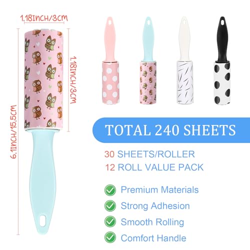 Hushee - بكرات صغيرة لإزالة الوبر وشعر الحيوانات الأليفة بحجم مناسب للسفر، أداة إزالة الوبر اللاصقة للملابس وشنط الهدايا وإزالة شعر الحيوانات الأليفة من هاشيه، 12 قطعة
