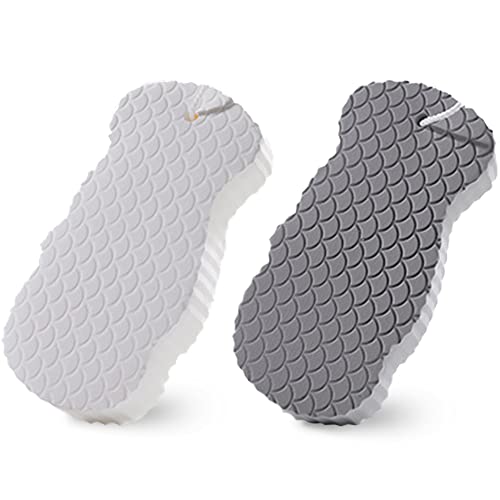 HUTNUOY - Super Soft Exfoliating Bath Sponge 2pcs, Premium Ultra Soft 3D Bath Body Shower Scrubber Suitable for All Ages (Grey & White) (Assorted Colors)