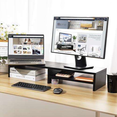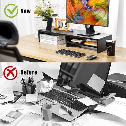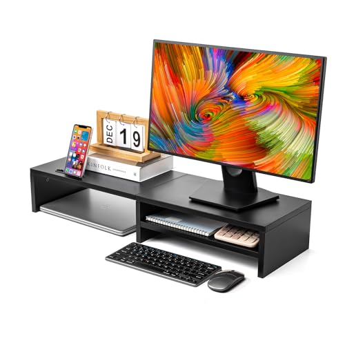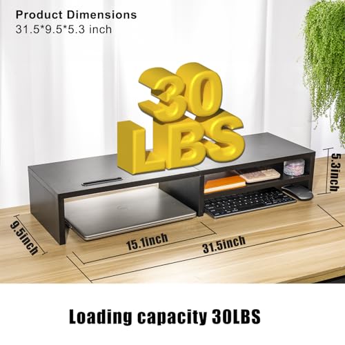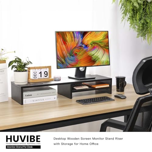 HUVIBE - Monitor Stand Riser,2 Tiers Wood Laptop Computer Monitor Riser Stand with Storage Organizer.Desktop Screen Monitor Stand Riser with Storage Organizer for Home Office,31.5 Inch (Black)