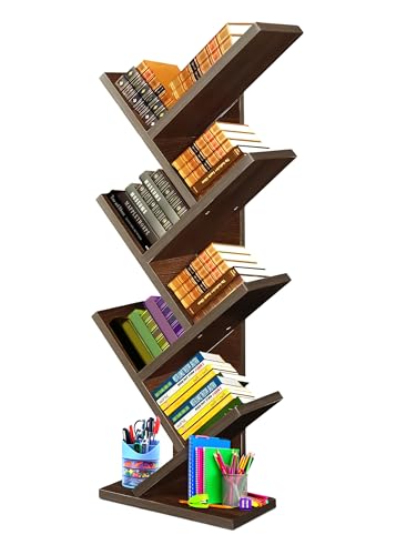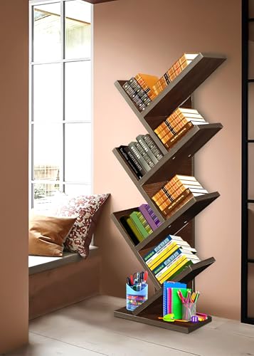 HVN India - E_ngineered-Wood- 7-Tier Boo_k-Rack,Storage_ of Boo-k Case,Free-Standing-Book_s Holder Organizer,Space Saver for-Home,Office-,Set of 1 (Brown) DIY(Do-It-Yourself) (Brown)