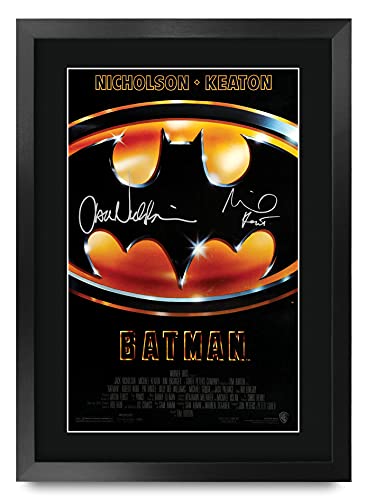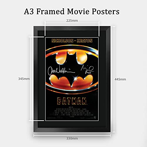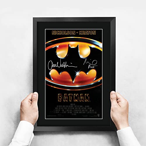 HWC Trading - بوستر فيلم «باتمان» بإطار مقاس ايه 3 بتوقيع مايكل كيتون وجاك نيكلسون من اتش دبليو سي تريدينغ صورة هدية موقعة ومطبوعة A3 هدايا مطبوعة لعرض الصور أسود