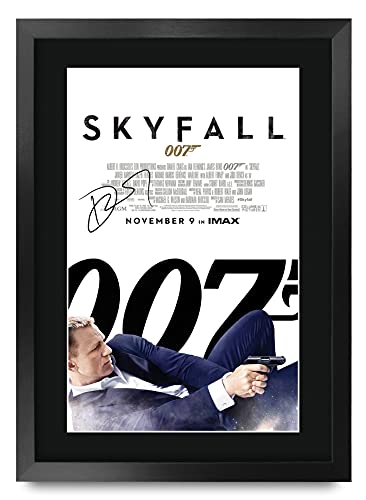 HWC Trading - إطار مقاس ايه 3 لملصق فيلم سكاي فول لجيمس بوند موقّع من دانيال كريج اتش دبليو سي تريدينج صورة أوتوجراف مطبوعة ومؤطّرة مع توقيع مُسبق الطباعة بوستر للعرض متعدد الألوان