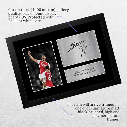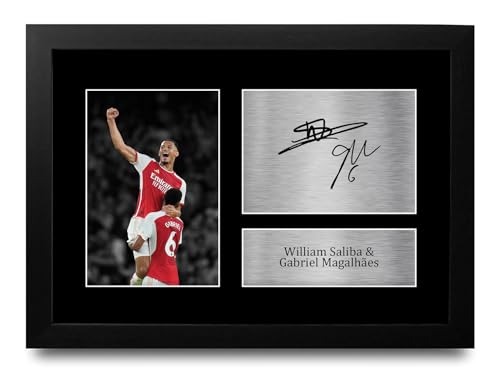 HWC Trading - اتش دبليو سي تريدينغ صورة توقيع مطبوعة من اف ار ايه 4 غابرييل ماجالهايس وويليام صليبا ارسنال لمحبي كرة القدم ومشجعي - اطار