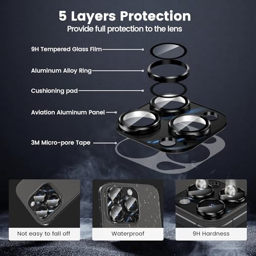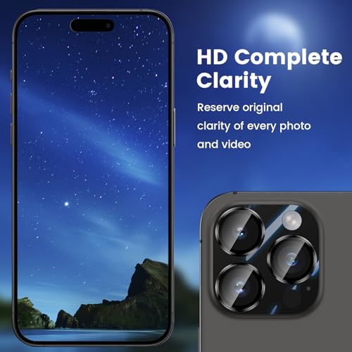 - 👍【شفاف للغاية】: الزجاج المقوى بدرجة صلابة 9 الذي يغطي العدسة شفاف للغاية. لا يؤثر على أداء التصوير المذهل لعدسة كاميرا آيفون 15 برو وآيفون 15 برو ماكس. لا يترك بقايا أو ضباب أو ضوء أزرق عند استخدام الفلاش.