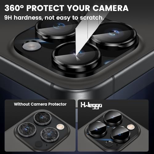 HWeggo - واقي عدسة مستقل من زجاج مقوى 9H مقاوم للخدش وفائق الوضوح، للتسجيل النهاري/الليلي، لموبايل آيفون 15 برو ماكس (6.7 بوصة) وآيفون 15 برو (6.1 بوصة) من H ويجو، أسود