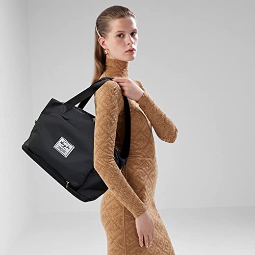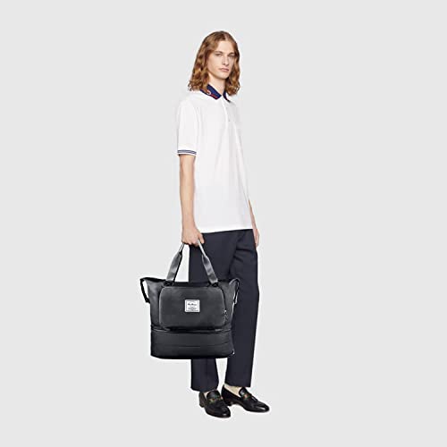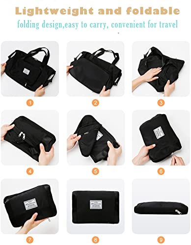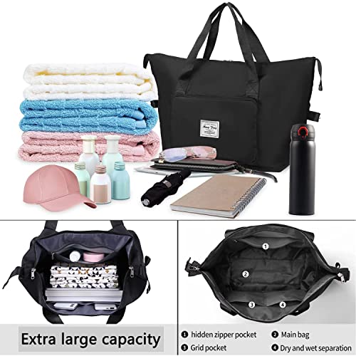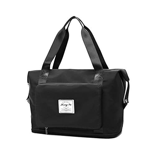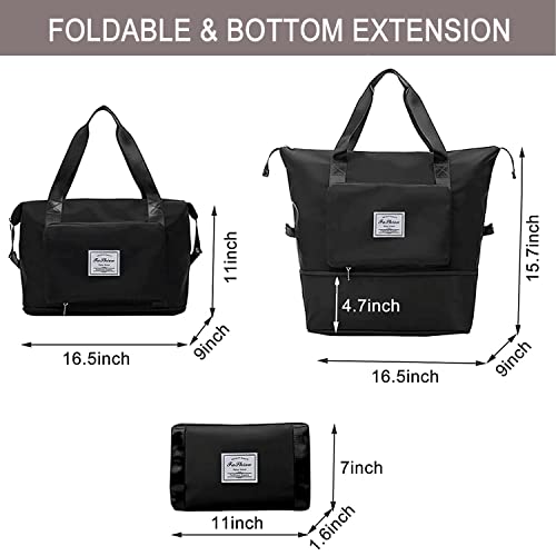 HWQ - Large Travel Bag Foldable and Expandable Lightweight Sports Tote Gym Bag with Compartment and Wet Bag Weekend Overnight Bag, Black, Large
